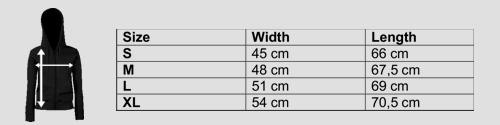 A heavy hooded zip sweat with the colourful motif at the back. The zipper is very resistant and comfortable at the same time. It has a feminine cut and a high neck. The motif is printed directly into the fabric via screen printing and will last very long.